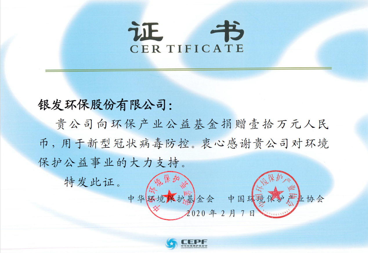 為體現(xiàn)全國上下萬眾一心、眾志成城、團(tuán)結(jié)互助、共渡難關(guān)的信心與抗擊新冠肺炎的決心,中華環(huán)境保護(hù)基金會 “環(huán)境保護(hù)產(chǎn)業(yè)公益基金”設(shè)立了“防控新冠肺炎”的專項(xiàng)捐助,與武漢人民共抗疫情,為遏制疫情在全國傳播從而威脅人民的健康貢獻(xiàn)一份力量。我會副會長單位云南銀發(fā)環(huán)保集團(tuán)第一時間響應(yīng),捐贈十萬元到中國環(huán)保產(chǎn)業(yè)基金用于購置醫(yī)療廢物處置設(shè)備以及短缺醫(yī)療物品,為肺炎疫情醫(yī)療廢物處置操作人員與監(jiān)管人員提供必要的防護(hù)用品支持。