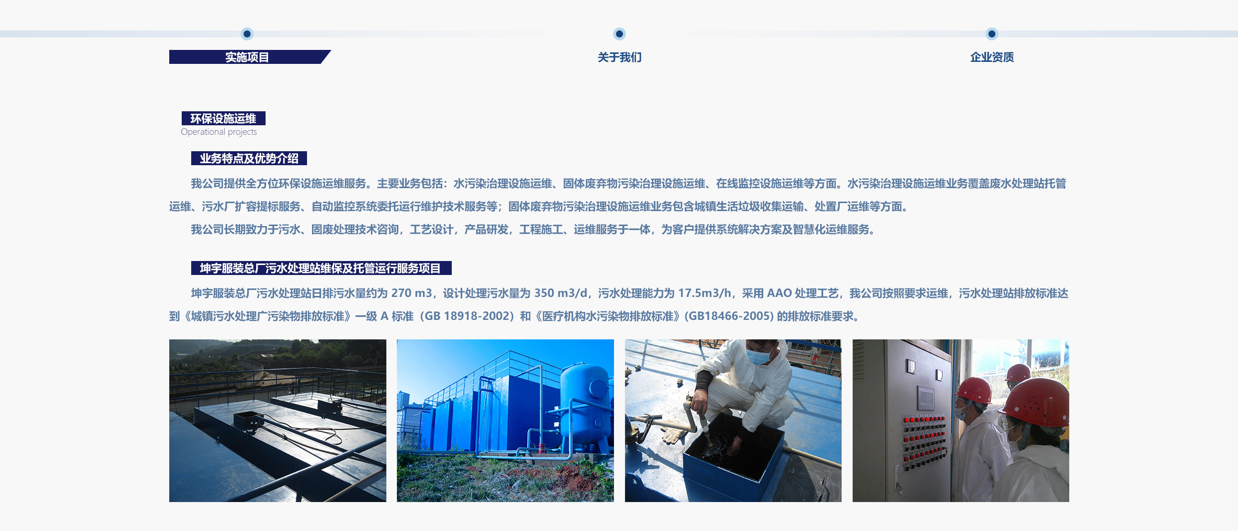 我公司提供全方位環(huán)保設施運維服務。主要業(yè)務包括:水污染治理設施運維、固體廢棄物污染治理設施運維、在線監(jiān)控設施運維等方面。水污染治理設施運維業(yè)務覆蓋廢水處理站托管運維、污水廠擴容提標服務、自動監(jiān)控系統(tǒng)委托運行維護技術服務等;固體廢棄物污染治理設施運維業(yè)務包含城鎮(zhèn)生活垃圾收集運輸、處置廠運維等方面。