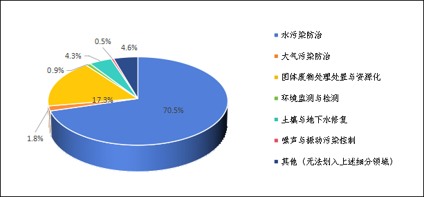列入統(tǒng)計范圍環(huán)保企業(yè)主要分布于水污染防治、大氣污染防治等七個細分領(lǐng)域。以水污染防治為主,見圖7,該領(lǐng)域企業(yè)數(shù)量占比70.5%,貢獻八成以上行業(yè)營業(yè)收入以及七成以上的環(huán)保業(yè)務(wù)收入。