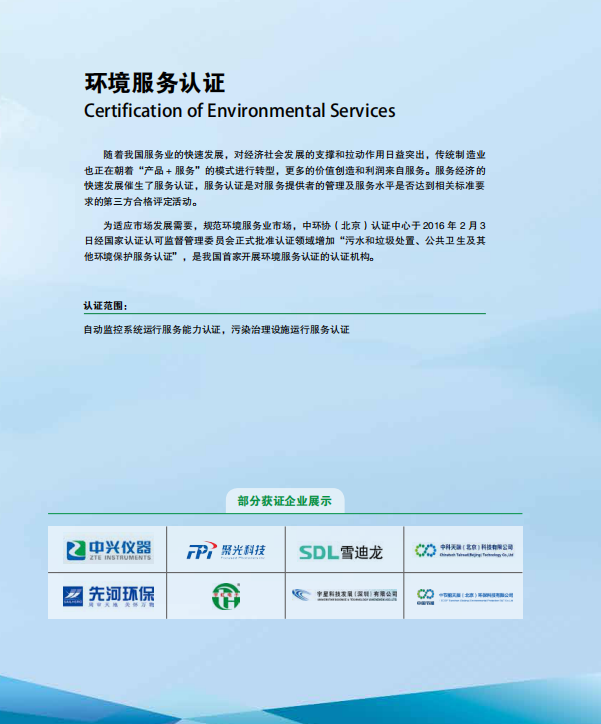 中國環(huán)境服務認證簡介